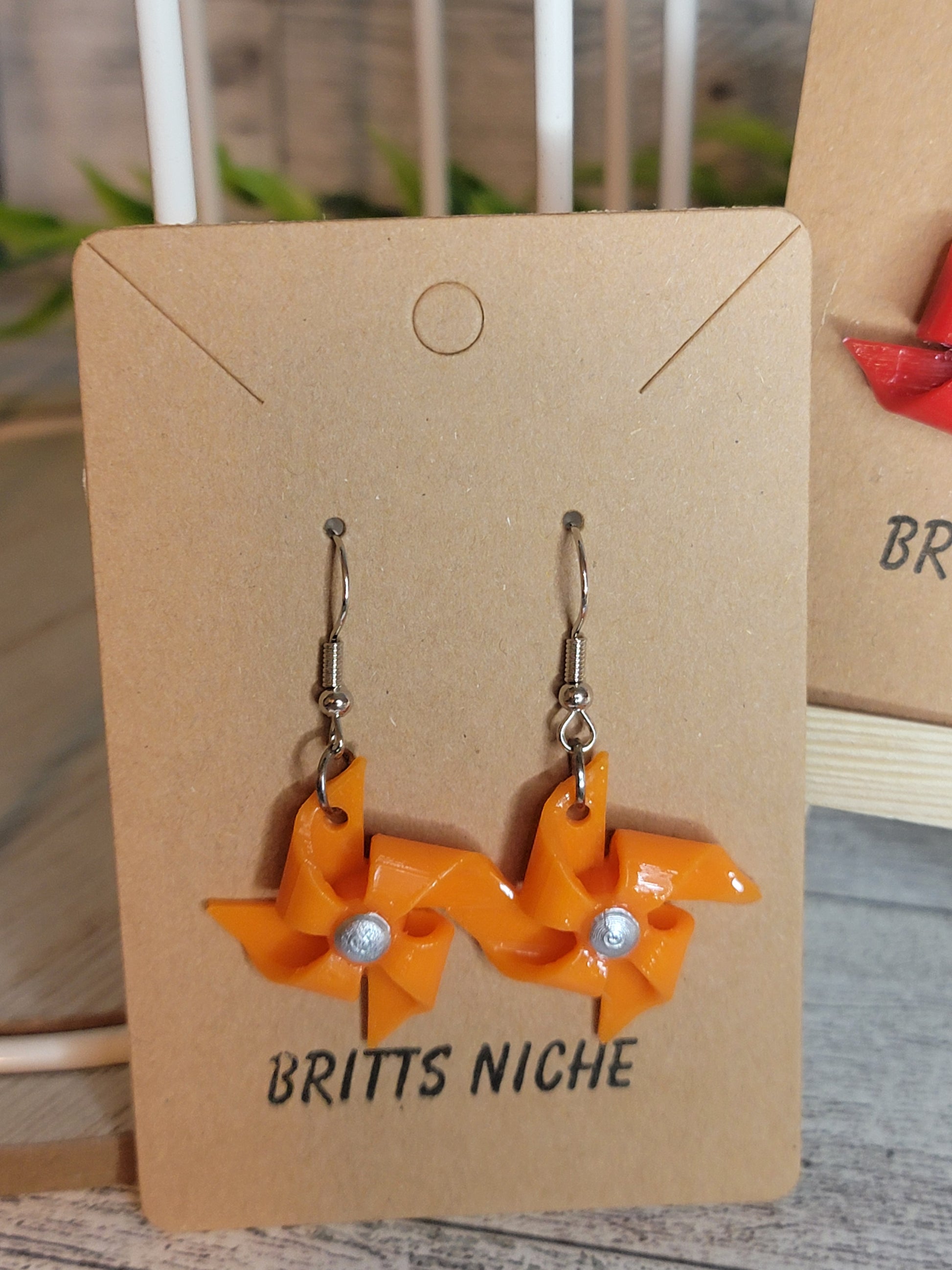 "Add a playful touch to your summer look with our Pinwheel Dangle Earrings. These quirky earrings are the perfect accessory for any fun-loving fashionista! So go ahead and spin into summer style with these playful earrings."